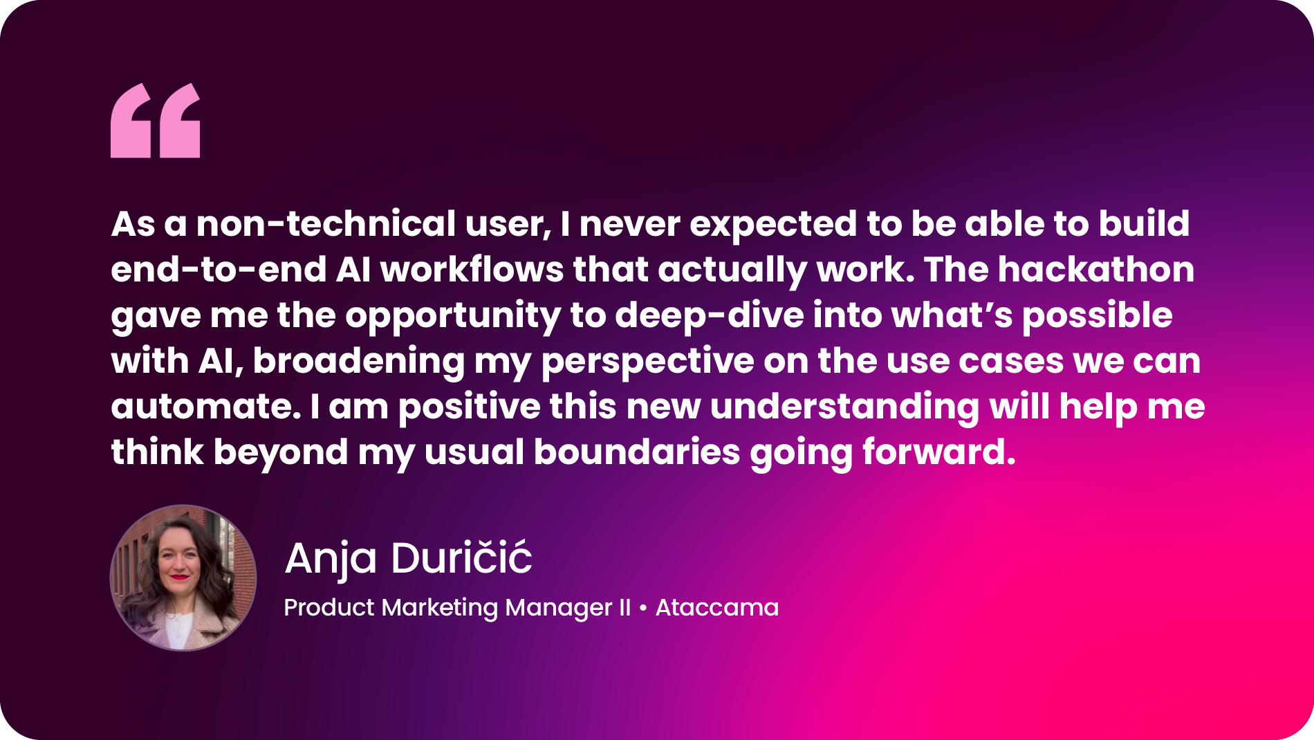 The result is a strong signal of how we approach AI at Ataccama: ambitious yet responsible, experimental but grounded, and always human-centric. When you Aim High and operate as ONE team, the future arrives faster than you expect.