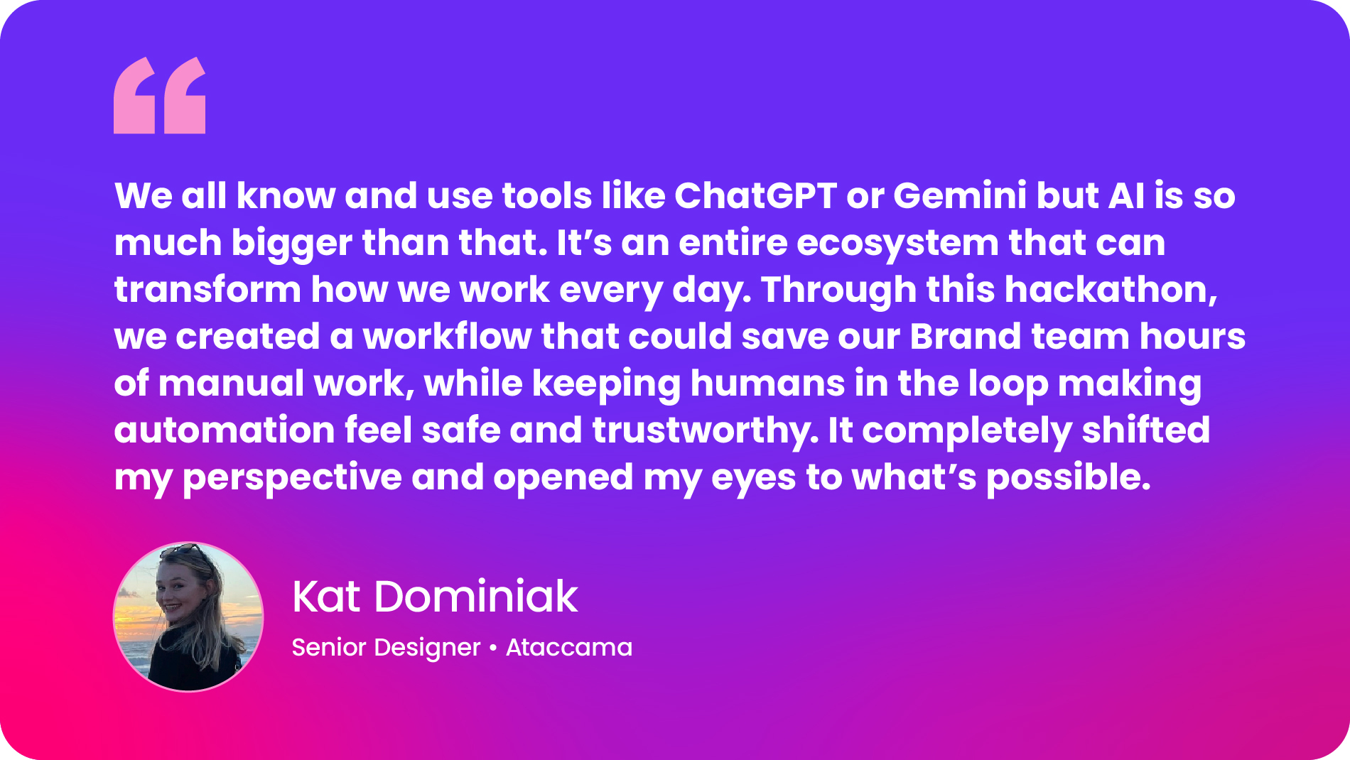 Just as important as ambition were the guardrails. Brand consistency, customer trust, and accountability were built into the challenge from the start. Every solution had to reflect how Ataccama shows up in the market.